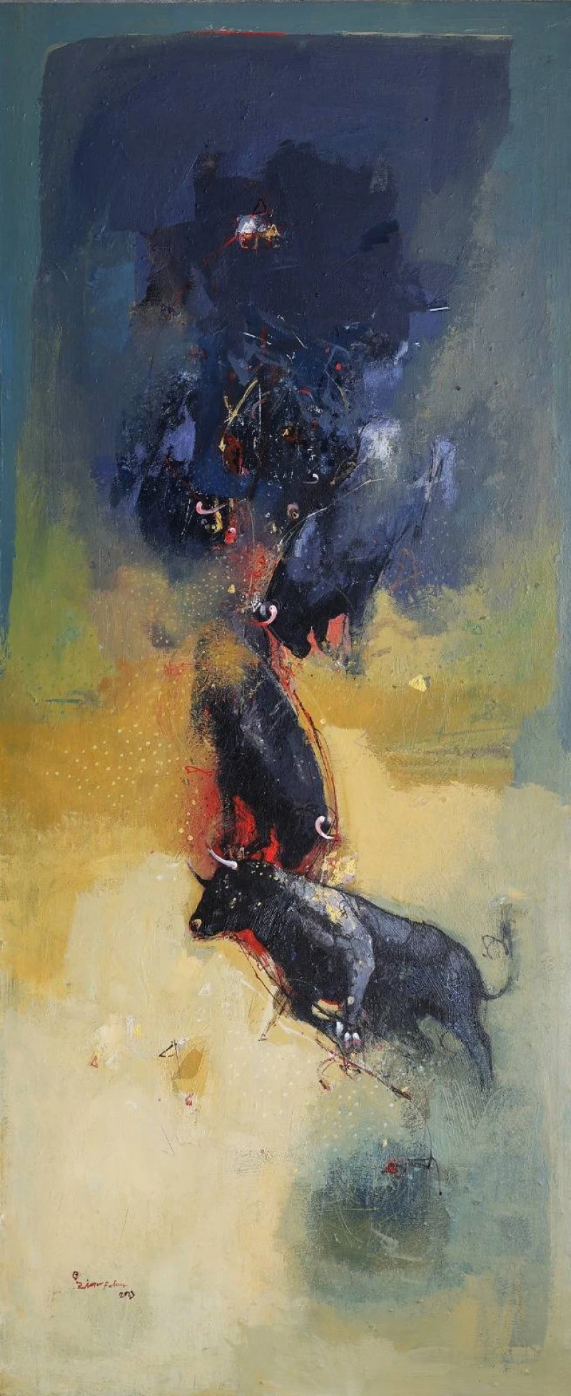 Bull Fight in Nature-2 February 21st, 2025 10:42 AM Media: Acrylic on CanvasSize: 184 x 77 cmYear: 2023